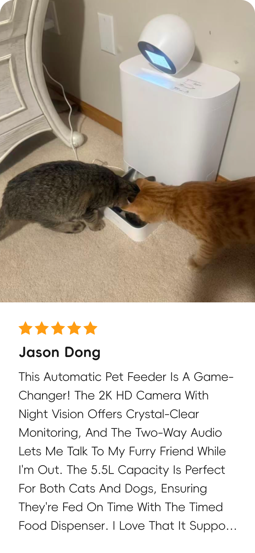 Precise scheduled feeding, no worries when traveling or on business trips.
